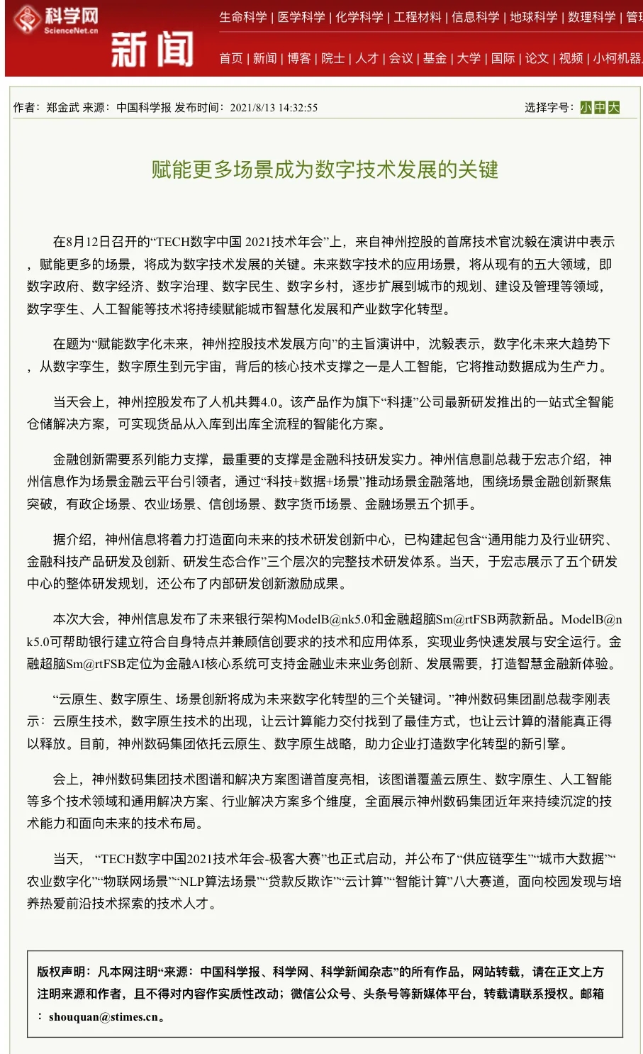 2021数字中国技术年会 神州控股、神州信息、jiuyou.com集团连发重磅产品